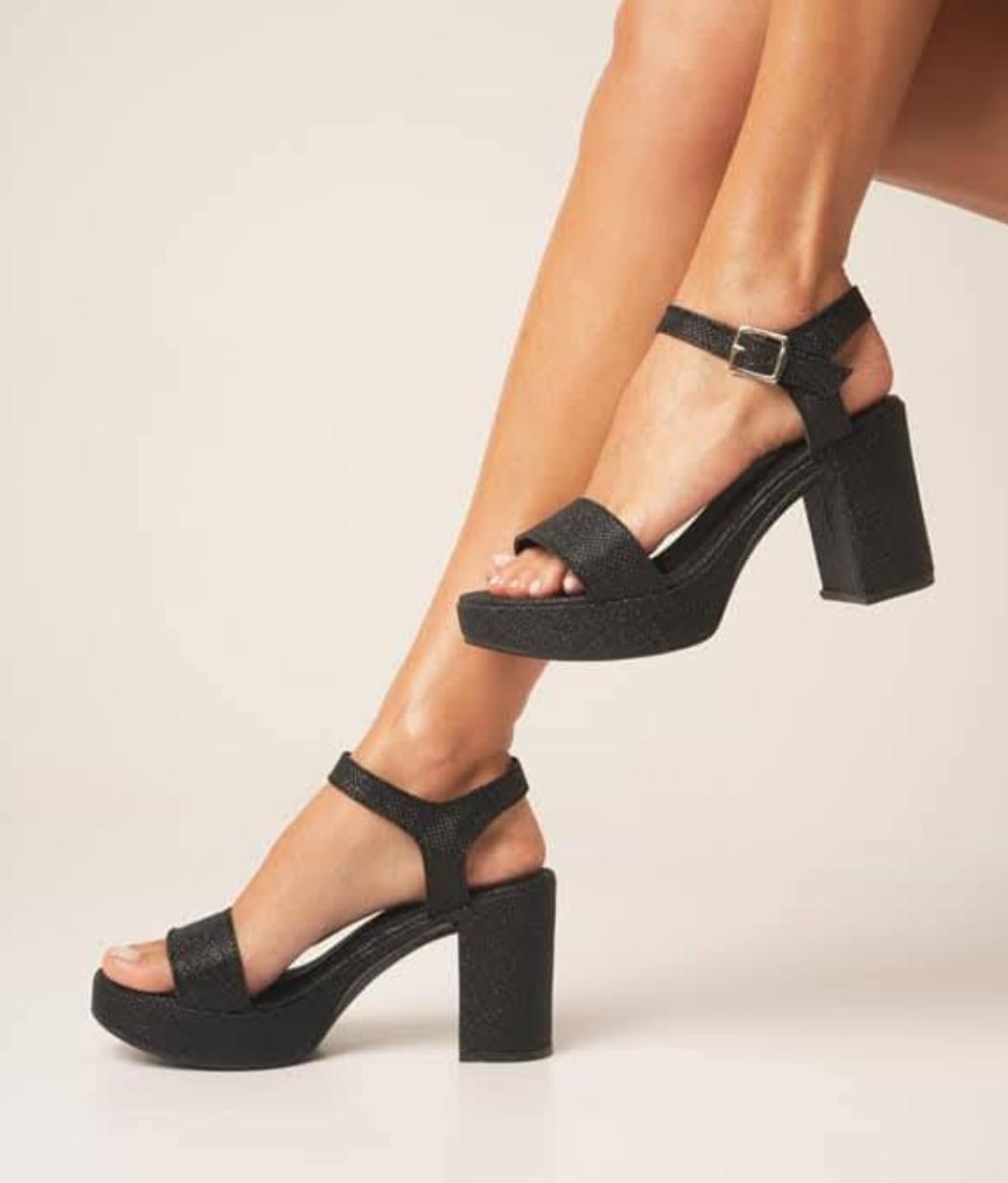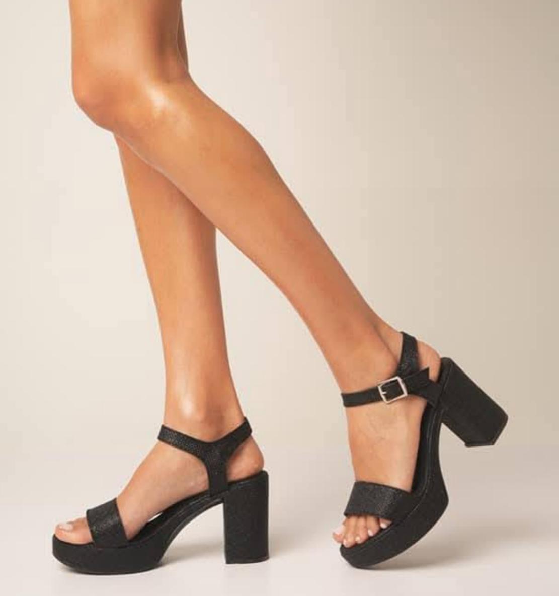 Sandalia Cuero Ecologico- taco de 8 cm -Plataforma de 3 cm-Plantilla confort