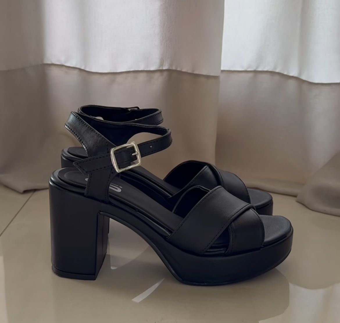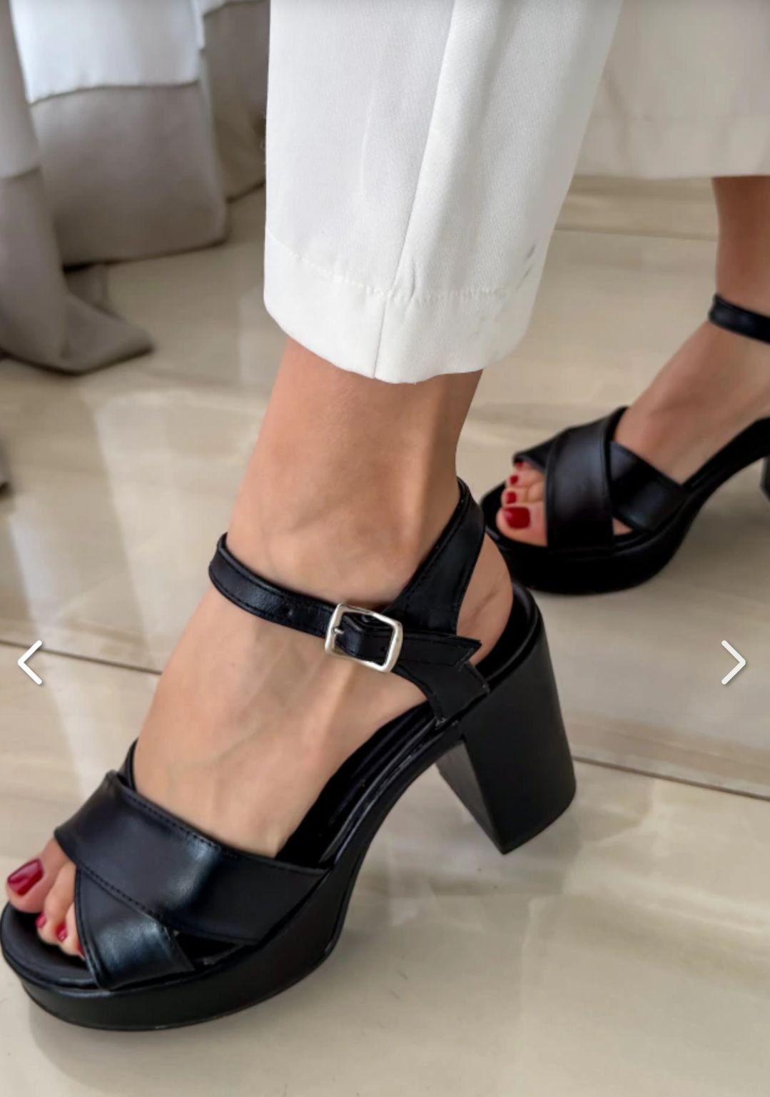 SANDALIA TIRA CRUZADA- CUERO SINTETICO-TACO 8 CM-PLATAFORMA 3 CM-BASE ANTIDESLIZANTE
