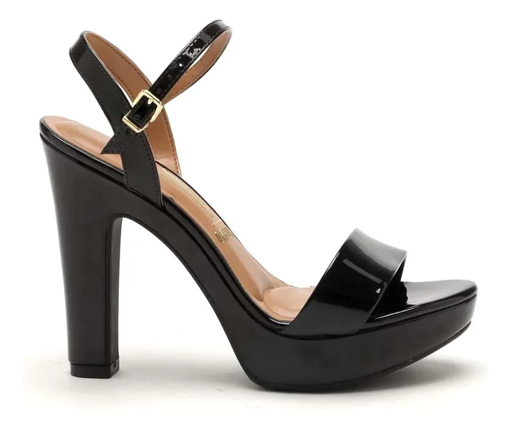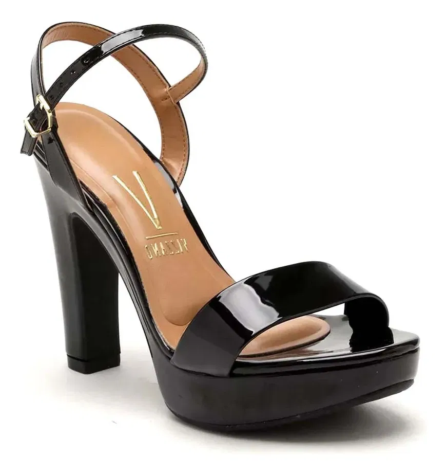 SANDALIA NEGRO CHAROL VIZZANO- TACO 12 CM -PLATAFORMA 3 CM APROX- BASE ANTIDESLIZANTE- PLANTILLA CONFORT